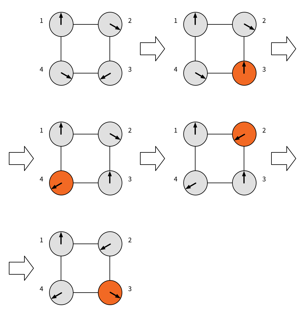 - in each step you turn only one knob (from one position to another position)